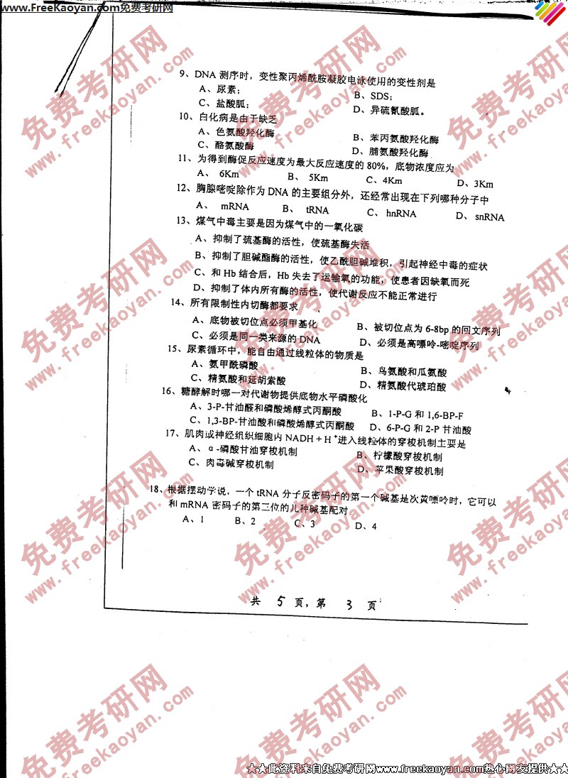 专业课考研经验 本站小编 FreeKaoyan 2018-01-23上海交通大学2006年考研真题-生物化学(III)