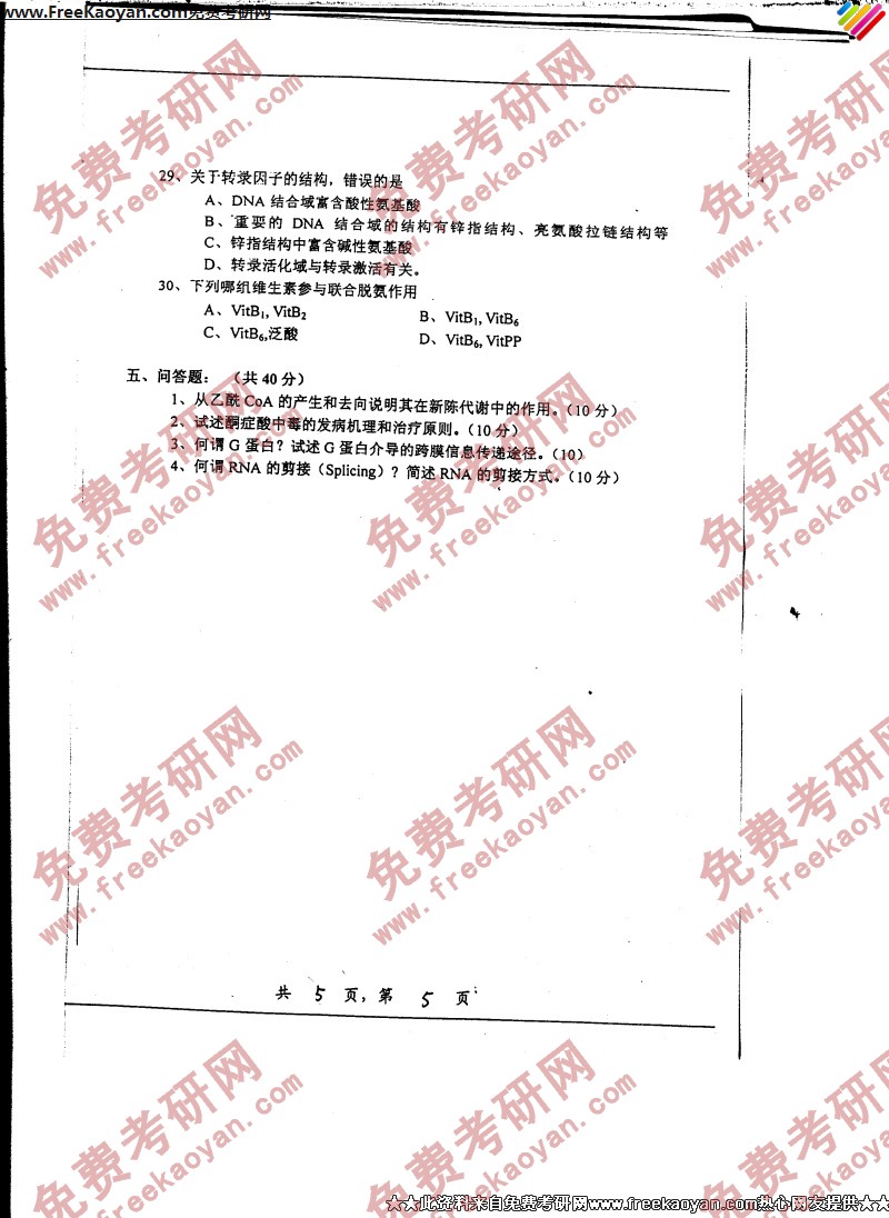 专业课考研经验 本站小编 FreeKaoyan 2018-01-23上海交通大学2006年考研真题-生物化学(II)