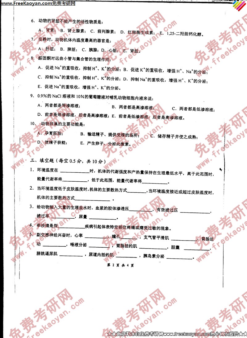 专业课考研经验 本站小编 FreeKaoyan 2018-01-23上海交通大学2006年考研真题-生理学