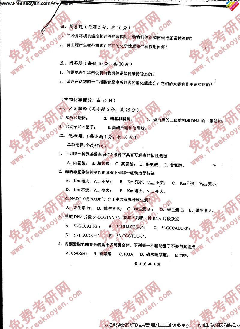 专业课考研经验 本站小编 FreeKaoyan 2018-01-23上海交通大学2006年考研真题-生物化学(II)