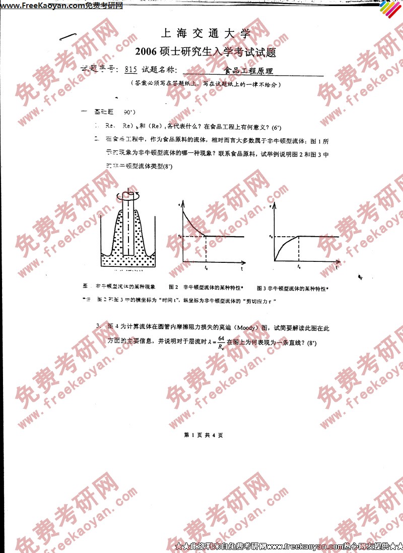 相关话题/考研真题 食品工程 上海交通大学 原理