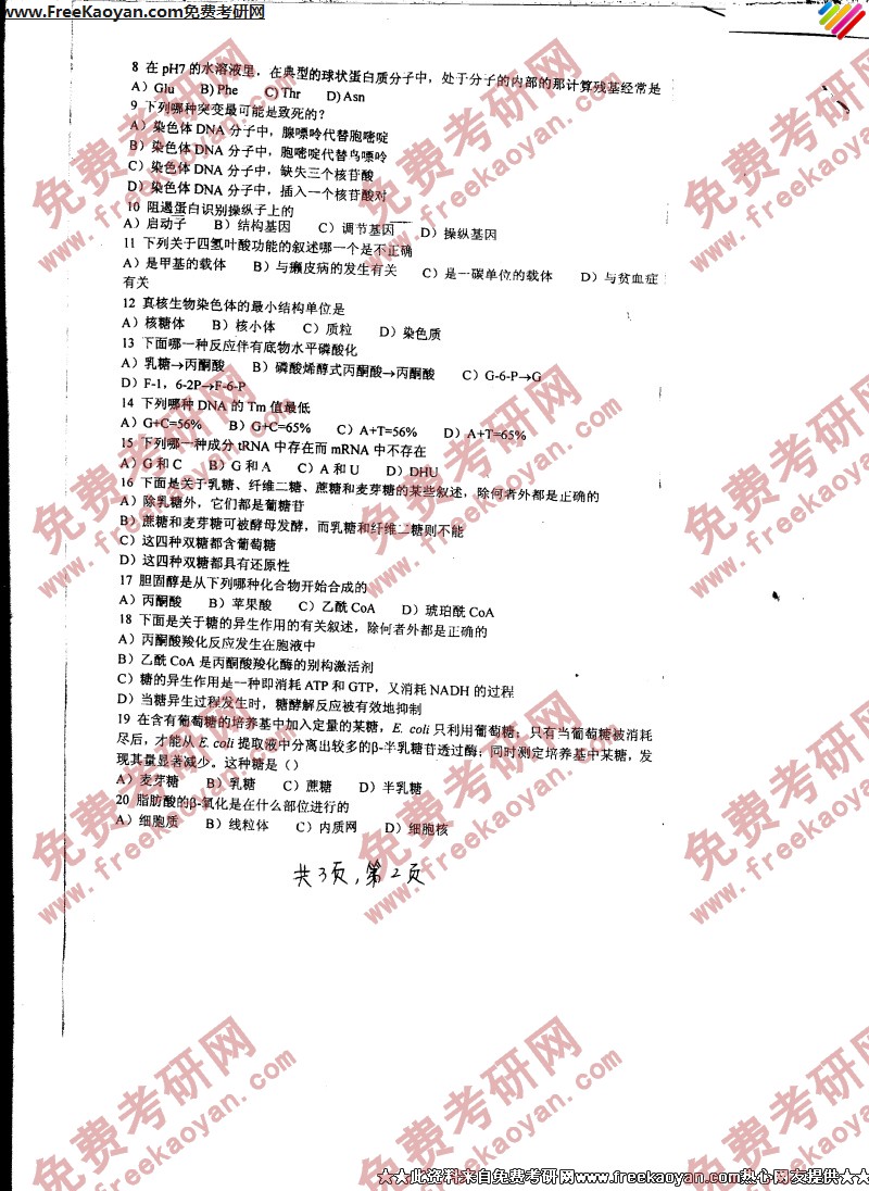专业课考研经验 本站小编 FreeKaoyan 2018-01-23上海交通大学2006年考研真题-生物化学(II)
