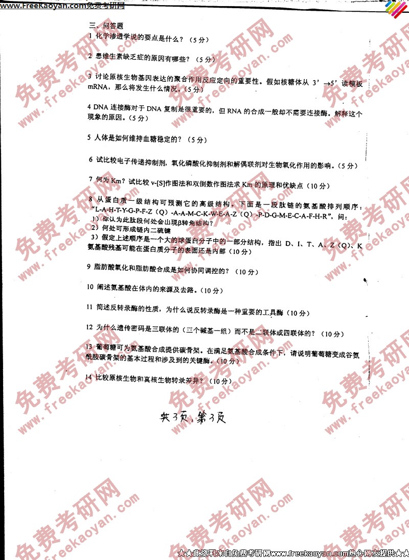 专业课考研经验 本站小编 FreeKaoyan 2018-01-23上海交通大学2006年考研真题-生物化学(III)