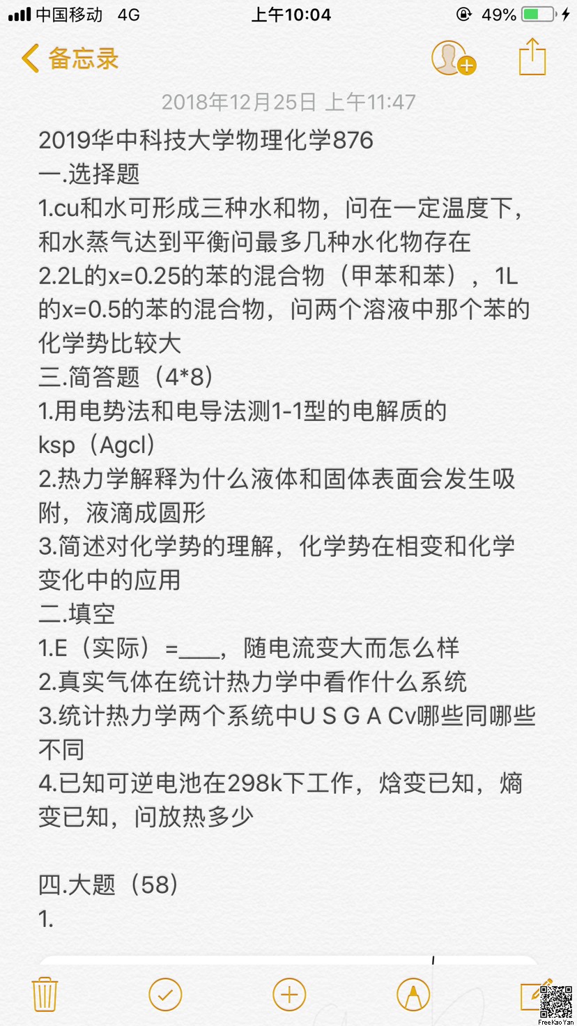 专业课考研资料 本站小编 免费考研网 2019-03-16中科院中科大《物理化学》考研笔记