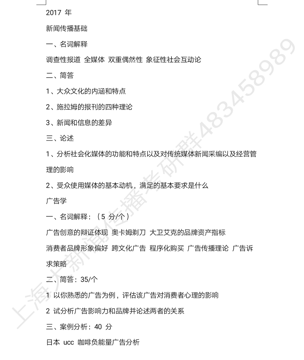 针对上师大传播学专业课的真题,你们如果能仔细分析情况,就会发现还是存在一定的解题套路,真题的题型也是比较固定。主要是名词解释、简答题和论述题。