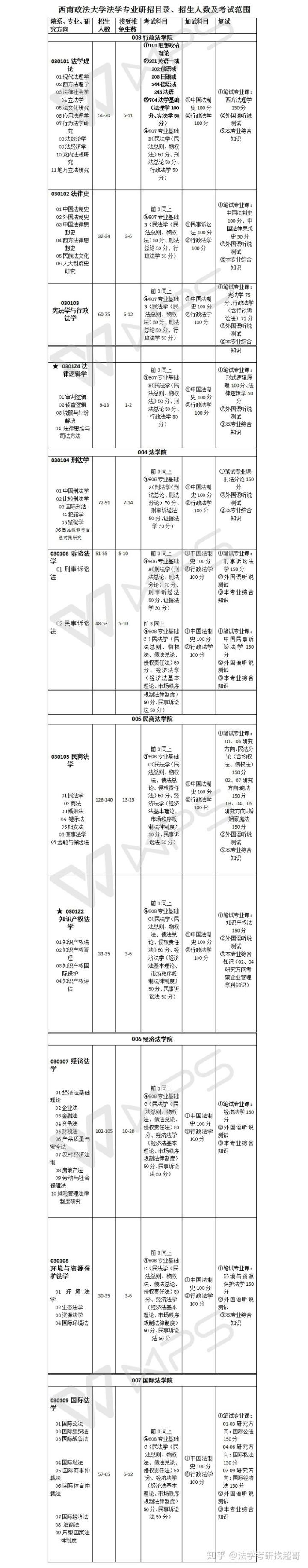 二、西南政法大学法学专业研招目录、招生人数及考试范围