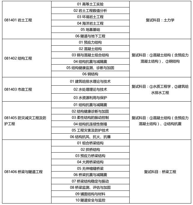学硕:工程力学,防灾减灾,交通安全,道路交通,水文学水资源260;岩土310;结构290;市政323;桥梁隧道298;水工结构286;港口海岸300。