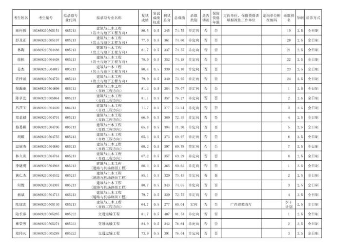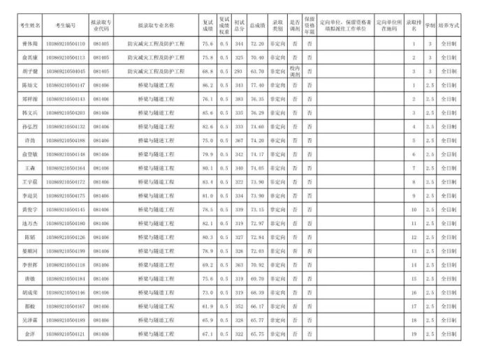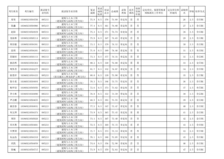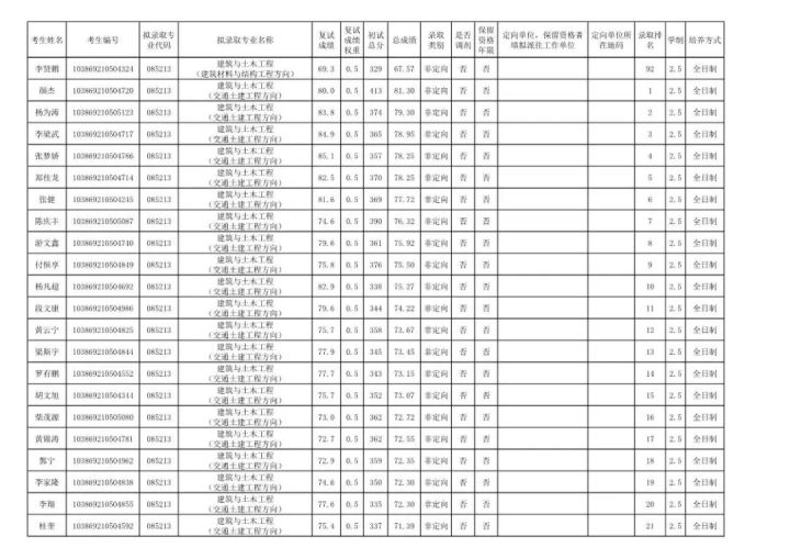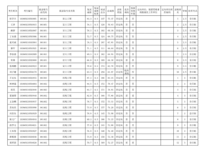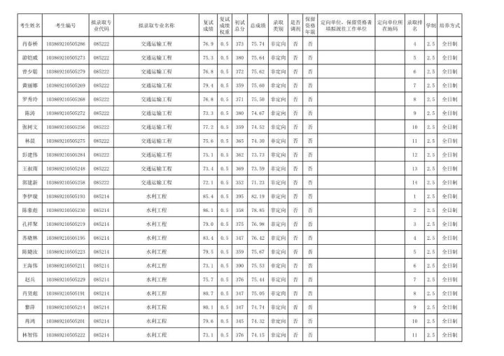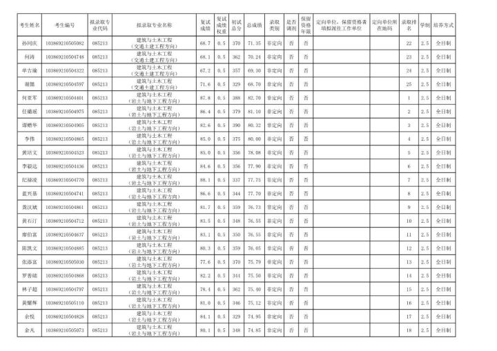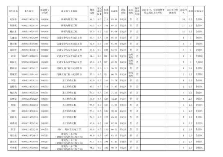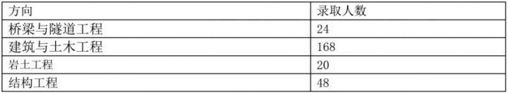 学硕:工程力学303;岩土305;结构322;市政311;防灾减灾307;桥梁312;交通安全322;水文学水资源355;水工结构276;港口海岸近海337。