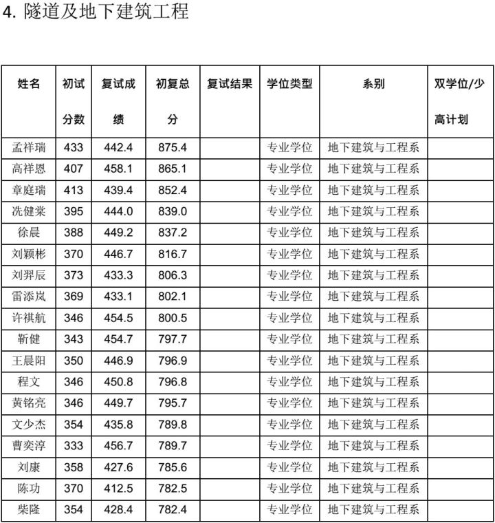- 复试流程(各方向略有不同,以结构方向为例,下同)