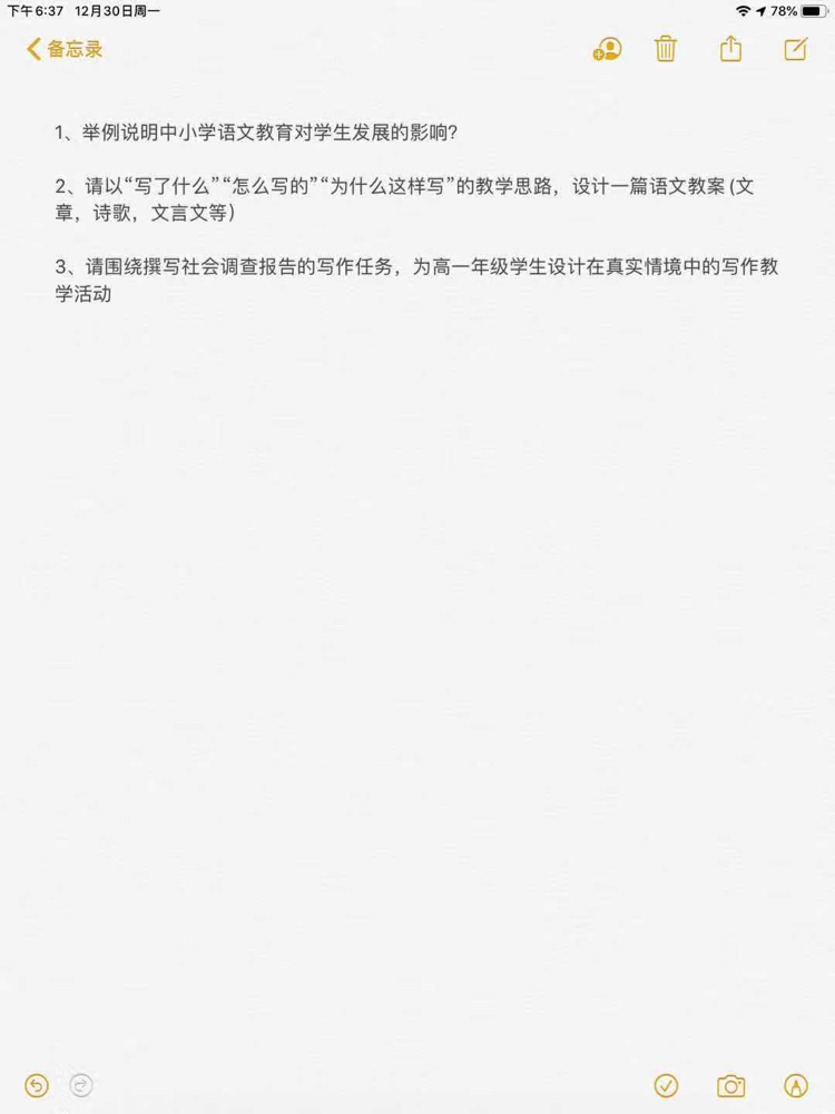 902的出题其实是分板块的,主要就是:课程性质类(语文工具性和人文性的统一、文道统一)、阅读教学类、写作教学类、写教案、其他(课标、作业、课外活动等)。只要你把每个板块的题目都准备了,上考场至少心里不会慌啦~当然902最重要的就是灵活,它不像333背了就有分,除了背诵,更多的是你的积累和思路。所以除了参考书目之外,你还要看各种课外书籍和导师论文。今年的考题比以往更灵活,但是不管怎么样,只要是平时有所准备,其实学姐我认为还好。附上今年的考题