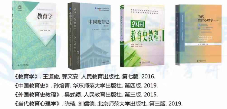 首先咱们来说一下333教育综合。考的是中国教育史、外国教育史、教育心理学、教育学原理几门课程的综合。参考书目如下: