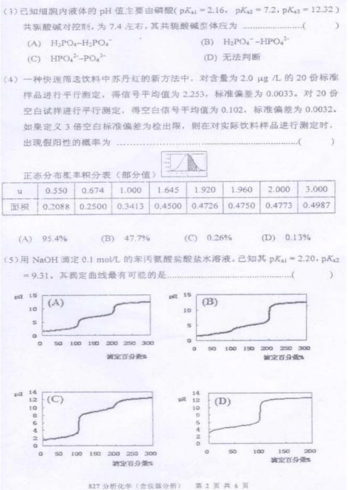 2010厦门大学827分析化学(含仪器分析)考研真题(2)