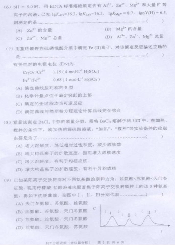 2010厦门大学827分析化学(含仪器分析)考研真题(3)