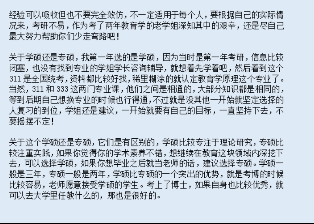 经验可以吸收但也不要完全效仿,不一定适用于每个人,要根据自己的实际情况来,考研不易,作为考了两年教育学的老学姐深知其中的艰辛,还是尽自己最大努力帮助你们少走弯路吧![害羞]