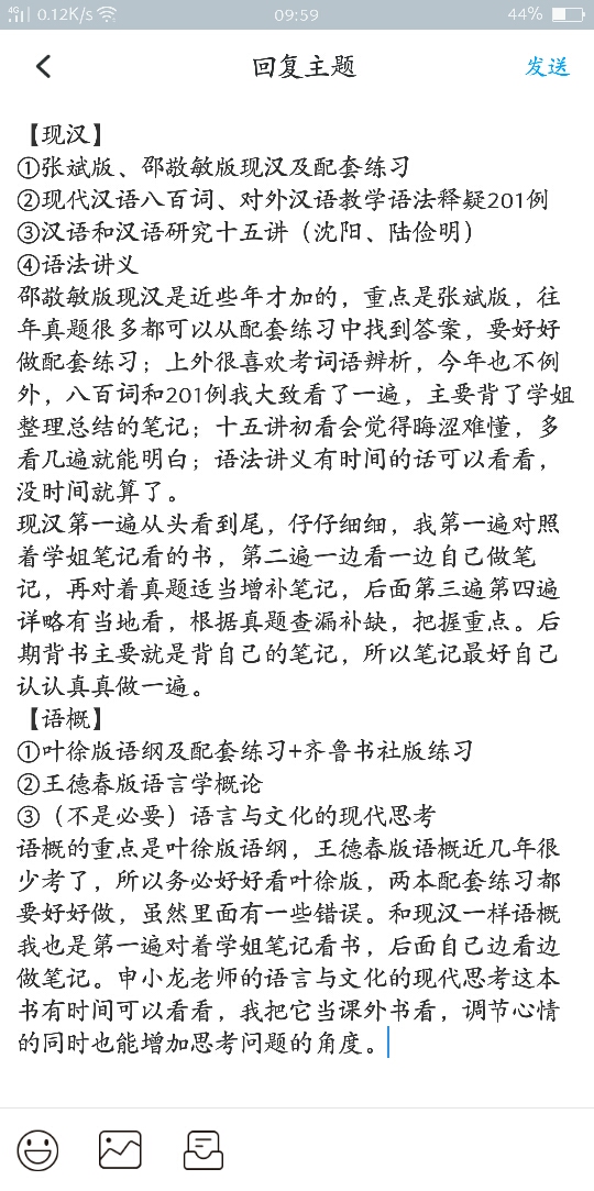 我是某师范大学英语专业学生,大三开始准备考研。由于从小喜欢诵读古诗文,所以当时打算跨考古代文学,目标院校的资料真题都准备好了,一直复习到大三下六月份。这大半年的复习过程中我认识了不少研友,他们的专业素养我自愧不如,深感自己与人家之间的差距;大三时我特别喜欢我的英语语言学老师,也对语言学萌生了强烈的兴趣,我老师对我们说过语言学理论的学习最终要回到研究汉语上来,经过几天的考虑和挣扎,我放弃了古代文学,最终在七月初安心复习语言学。