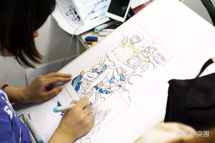 手绘的话,我是参加了突围的手绘集训,网上有一些人说突围是主要针对南方的院校,但是可以这么说,我就是歪打正着来到了突围。参加完突围的集训后,我回到天津也对当地的和北京的考研辅导机构做了一些了解。针对北印的培训班很少,另外体量也是没办法和突围相提并论的。在突围的回忆里充斥着学长们十一点后来教室赶人休息的声音,在教室里也很轻易地看到隔夜的日出,你可以看到很多比你更为努力的身影,我感觉参加集训一方面是为了锻炼手绘能力,另一方面是可以提前感受压力,自从高考以后很少感受那种充实了。突围的评画过程是收获最大的,一面墙上你可以看到各种风格的作品和各种可能性。即便不同院校不同形式的考题,也可以有所收获。