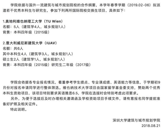 每一位深圳大学建筑与城市规划学院的研究生,都会有国际交换生的申请资格,但前提是你要抓紧拿到6.5的雅思成绩。