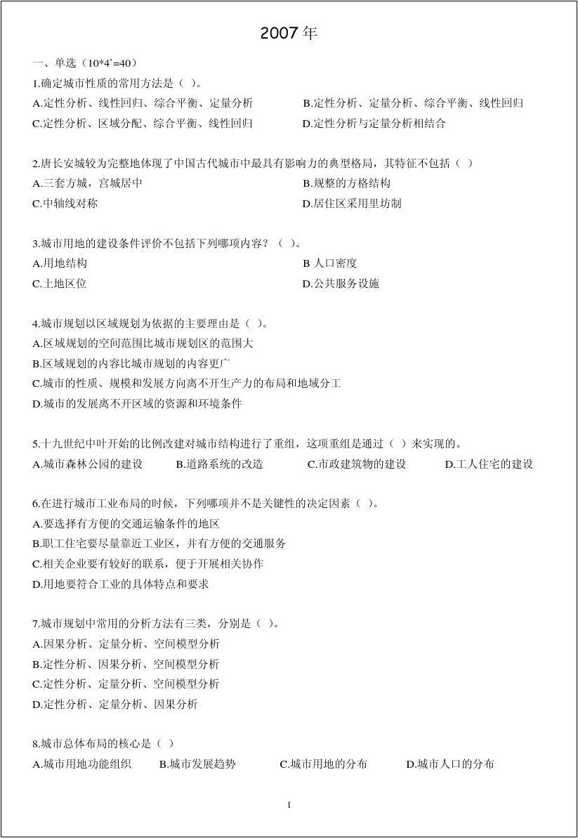 专业课考研资料 本站小编 免费考研网 2015-03-10一、名词解释 (310) 1.建设规划许可证 2.城市防洪标准 3.历史城区 4.城市救灾生命线系统 5.大容量快速交通 6.华盛顿宪章 7.规划区