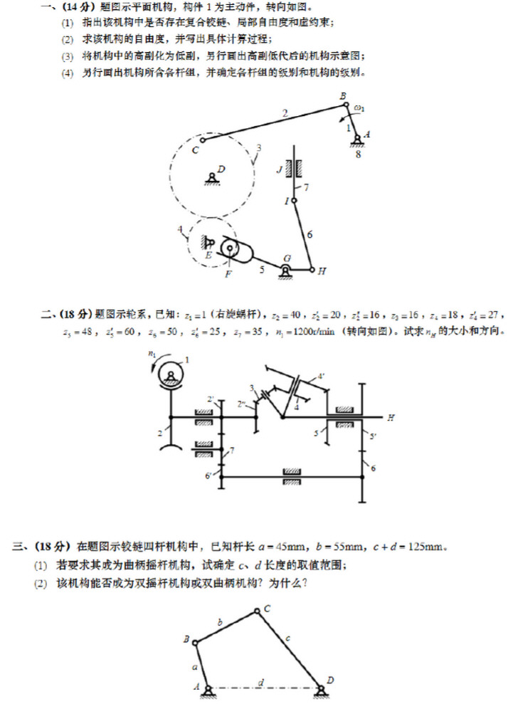 机械原理部分(50%): 一、填空题(111) 一共11个题,每题一个空; 题目很常规,都是基本的概念,在杨家军《机械设计与机械原理考研指南》上基本都能找到原题; 唯一有点偏的题是考到了机械系统的4个特性(整体性、相关性、目的性、环境适应性); 二、计算自由度 2题,给了2个机构图。要求计算自由度 ...