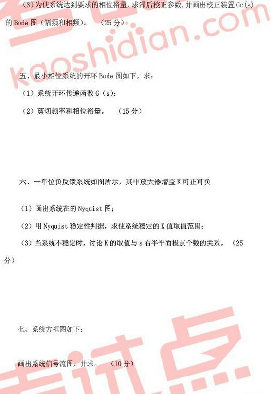 专业课考研资料 本站小编 免费考研网 2015-04-232012年浙大845自控原理考研真题(部分版)