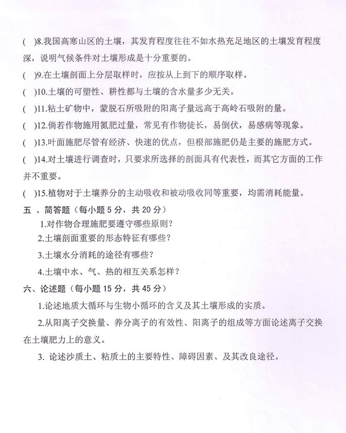 专业课考研经验 考研 Freekaoyan.com 2008-03-18 一.名词解释(每小题 3分,共30分)1.土壤呼吸2.土壤热容量3.等电点(零电点)4.土壤污染5.土壤质量6.土类7.土壤风化淋 ...