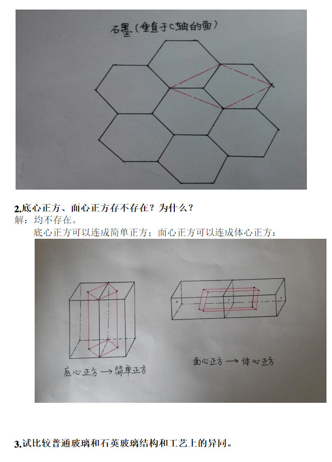 2.有人将六方晶胞表示成图示,论述这种表示法是否正确。原子坐标为(2/3,2/3,1/4),(2/3,1/3,3/4)。 答:将上述坐标的原子进行平移,同时减去(-1/3,2/3,1/4)得到新坐标为(1,0,0)和(1,-1/3,1/2),将所示原子表示在六方晶胞中,如图所示,两个原子在一个侧面上,由此扩成的点阵显然不是六方点阵,故原来的表示也不可能 ...