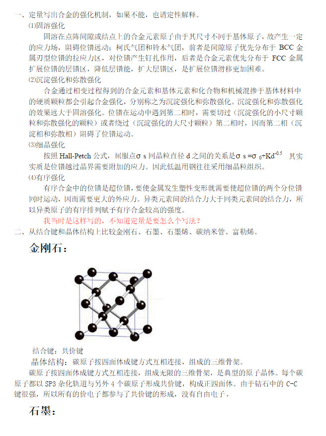 一、定量写出合金的强化机制,如果不能,也请定性解释。