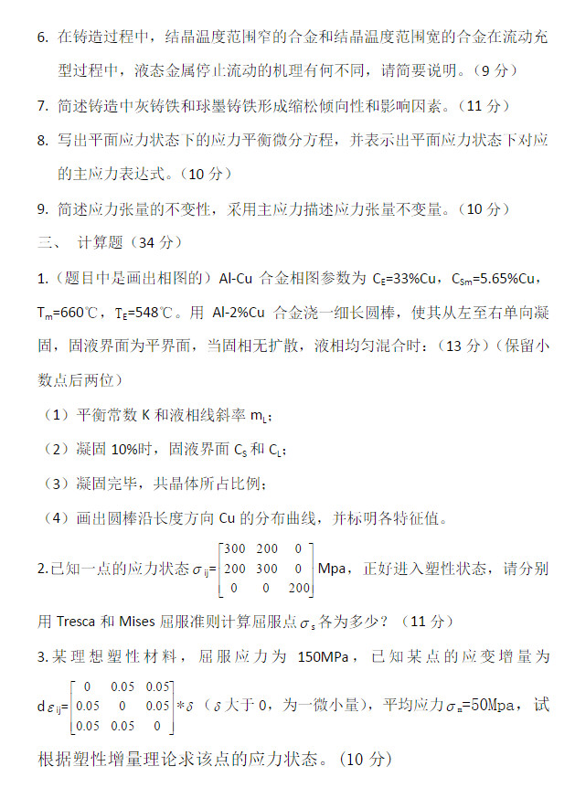 2012华中科技大学材料成形原理真题