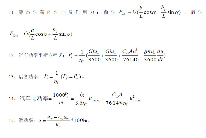1、汽车的动力性:指汽车在良好路面上直线行驶时由汽车受到的纵向外力决定的、所能达到的平均行驶速度。