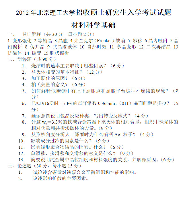 2012年北京理工大学招收硕士研究生入学考试试题
