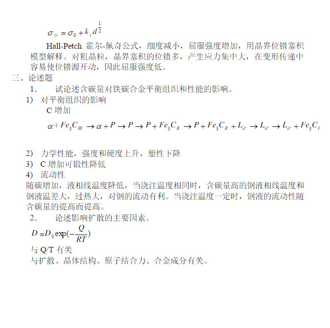 专业课考研资料 本站小编 免费考研网 2015-05-16一、定量写出合金的强化机制,如果不能,也请定性解释。
