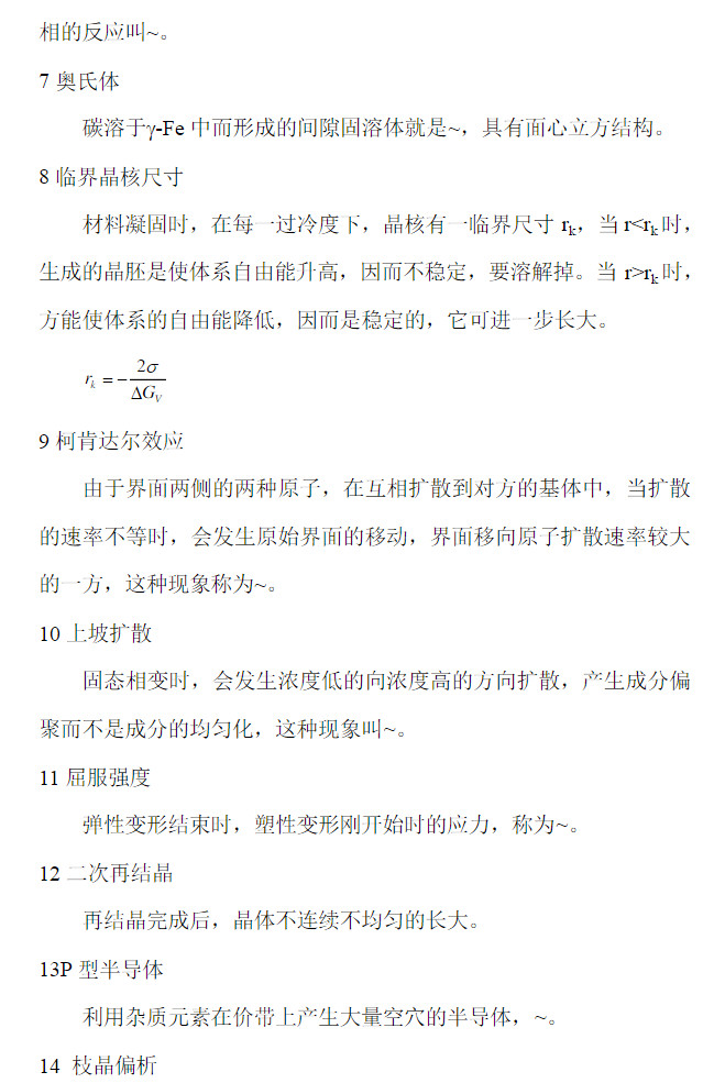 2010年北京理工大学招收硕士学位研究生入学考试 材料科学基础 试题 一 名词解释(共30分,每小题2分) 1 空间点阵 2 位错 3 离异共晶 4 置换固溶体 5 晶内偏析 6 相律 7 不全位错 8 固溶强化 9 热加工 10 交滑移 11 铁素体 12 上坡扩散 13 加工硬化 14 成分过冷 15 异质形核 二 问答题( ...