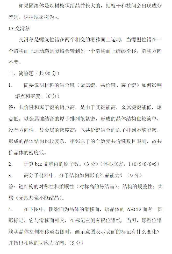 • 湖南大学2015材料科学基础真题校对版