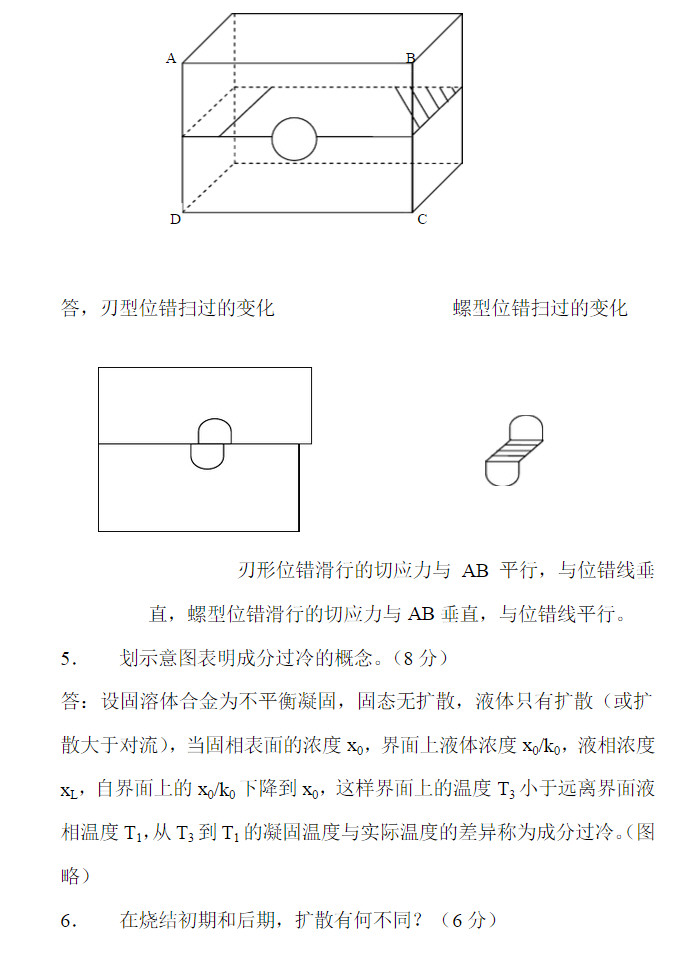 2010年北京理工大学招收硕士学位研究生入学考试 材料科学基础 试题 一 名词解释(共30分,每小题2分) 1 空间点阵 2 位错 3 离异共晶 4 置换固溶体 5 晶内偏析 6 相律 7 不全位错 8 固溶强化 9 热加工 10 交滑移 11 铁素体 12 上坡扩散 13 加工硬化 14 成分过冷 15 异质形核 二 问答题( ...
