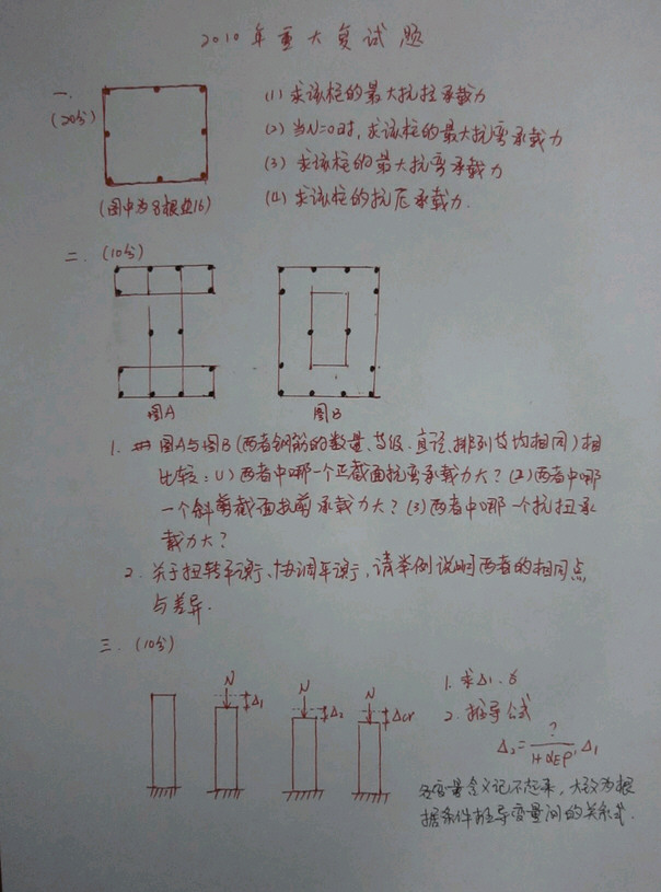 1、题型,只有大题没有小题;第一题画内力图;第二题力法;第三题位移法;第四题矩阵位移法;第五题动力学;第六题超静定结构画弯矩图和弯曲变形示意图;