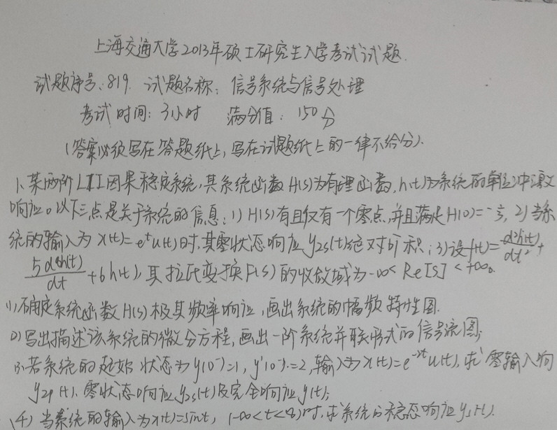 2012年天大信号题目较难(大题难,小题不难),在此做一定的分析。12年的信号题目刻意避免和以往知识点重复,出现了很多以往没有考的知识点,例如全通的零极点知识,最小相位的知识等;近两年天大信号题目变化很大,难度加大,考点知识面不断扩大,所以复习全面很重要;题目灵活,知识点针对性比较强 ...