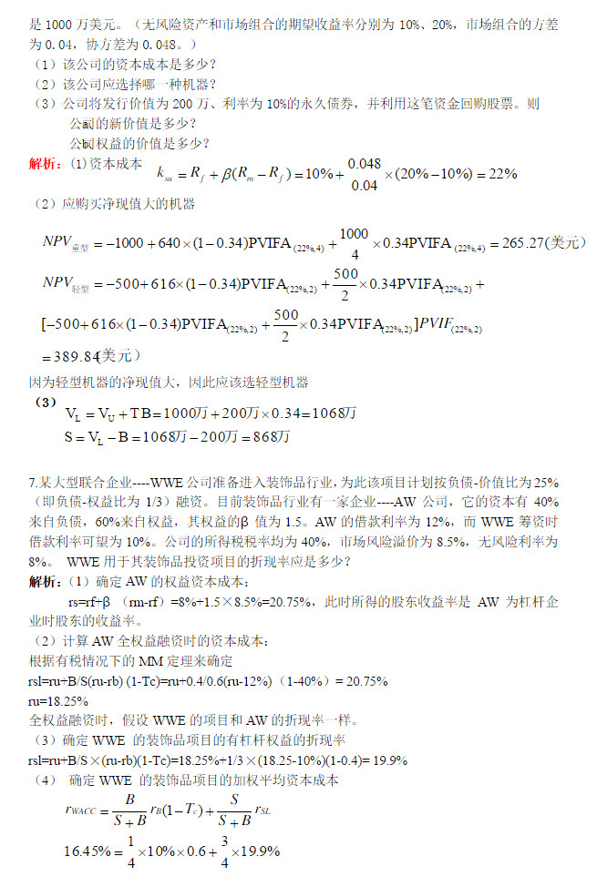 公司金融习题及答案 供考研人参考 后三题难度大(4)