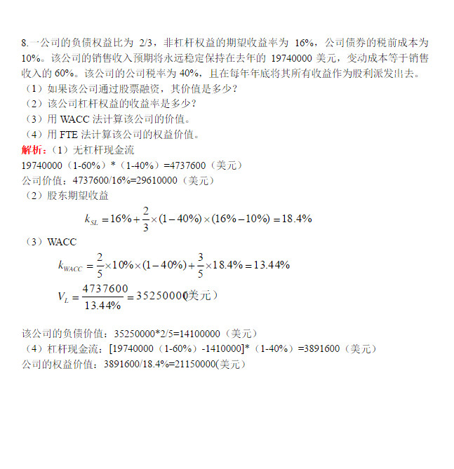 公司金融习题及答案 供考研人参考 后三题难度大(5)