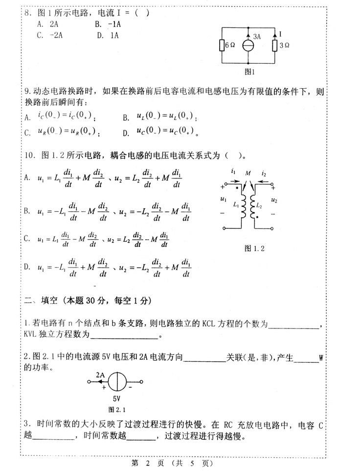 广东石油化工学院2009-2010年度电路课程试卷(2)