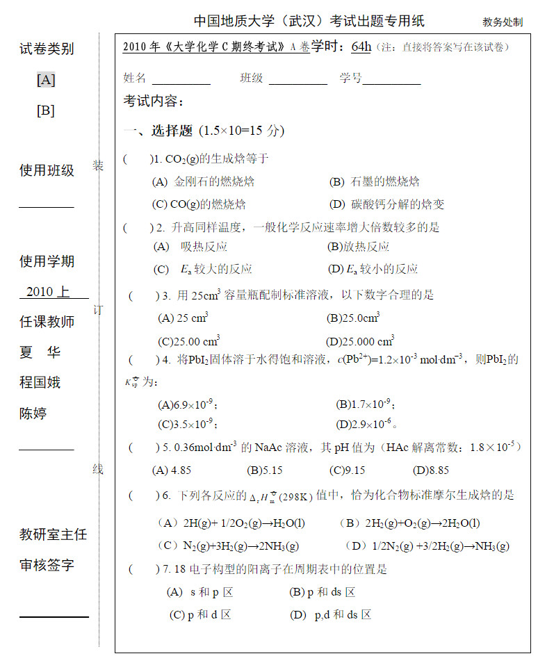 具体哪几个记不清楚了,有4个化学式。第5要求用鲍林规则解释高岭土的结构。(15分)