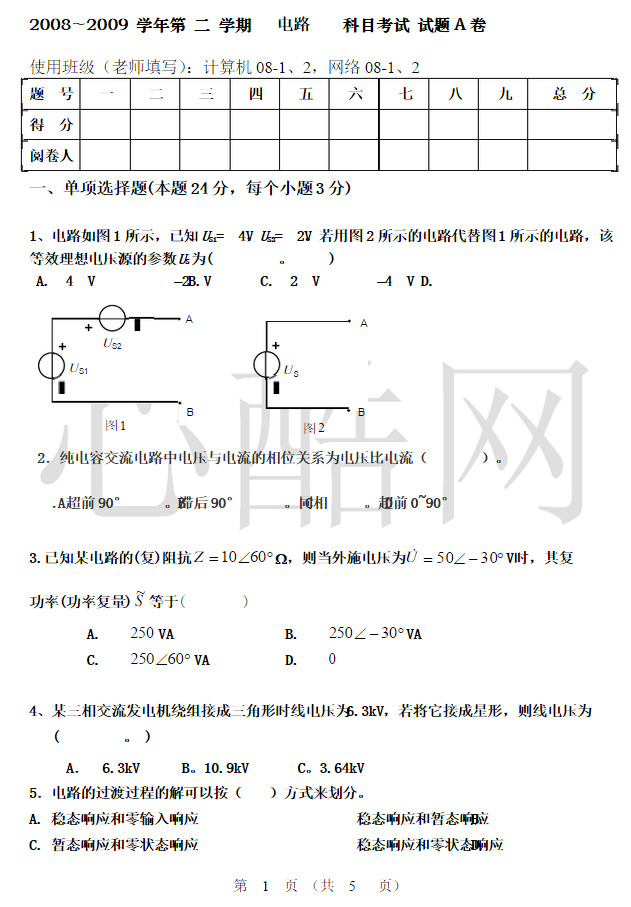 专业课考研资料 本站小编 免费考研网 2015-05-31东南大学2009年《电路分析基础》考研真题 答案 ...