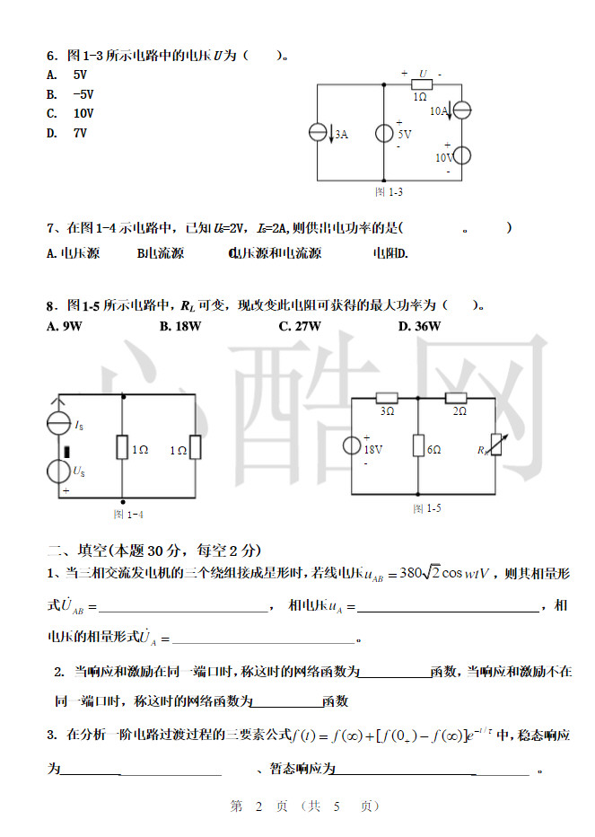 广东石油化工学院2008-2009年度电路课程试卷A带答案(2)