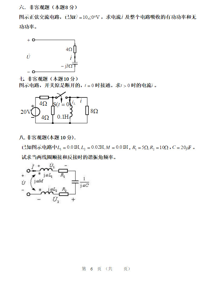 广东石油化工学院2008-2007年度电路课程试卷B带答案(6)