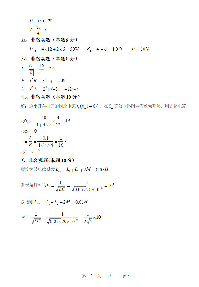 专业课考研资料 本站小编 免费考研网 2015-05-31东南大学2009年《电路分析基础》考研真题 答案 ...