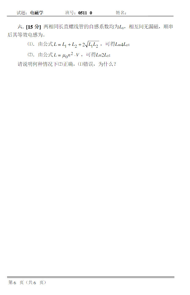 哈尔滨工业大学2005/2006学年春季学期电磁学试题(6)