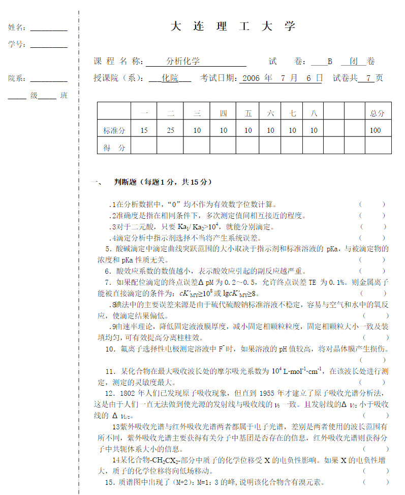 本人2011年报考大连理工大学应用化学专业,初试专业课数学二和有机化学(885),很遗憾没有考上大工,后调剂,初试的有机化学感觉复习不好,于是在专业课有机化学考试的时候答完自己会做的题目后,将考试真题写在准考证背面,以供学弟学妹们参考。上一次在2011年5月29日已经上传,这一次是综合补充。第一 ...