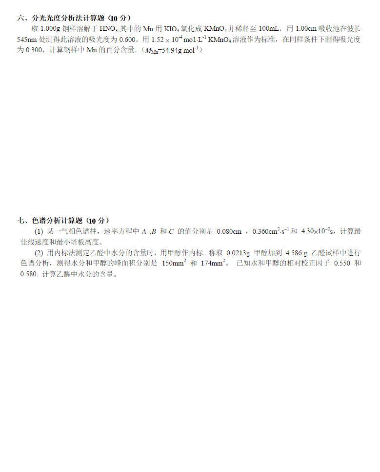 大连理工大学2006分析化学B期末试卷带答案(6)