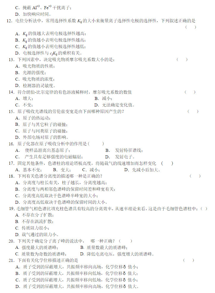 1, 玻璃电极膜电位的产生原理?氟离子选择电极的测定原理?标准加入法的好处(电位分析)? 2,原子发射的原理?光源的作用是什么?有哪些类型? 3,导致原子吸收谱线变宽的因素有哪些?空心阴极灯,单色器的作用?为什么要采用峰值吸收,要求是什么? 4,分子磷光,荧光的产生机理,为什么荧光光度计比紫外可见光度计 ...