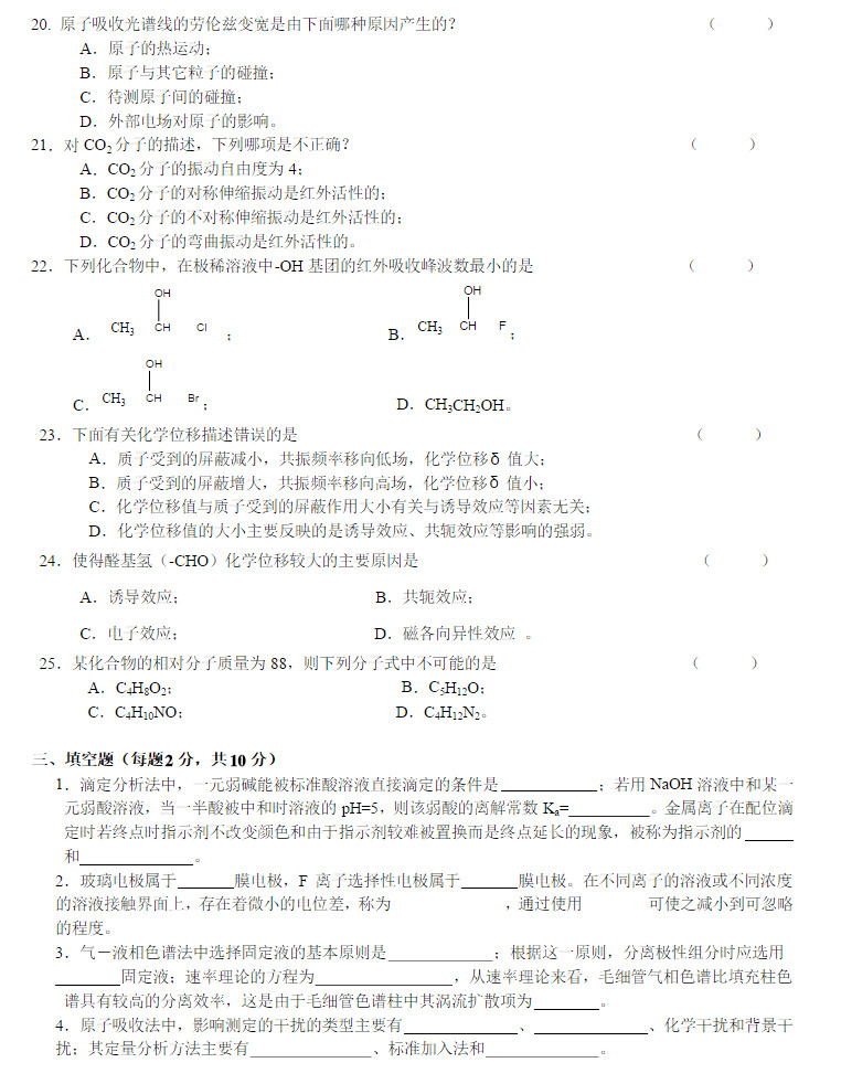 大连理工大学2007分析化学B期末试卷带答案(4)