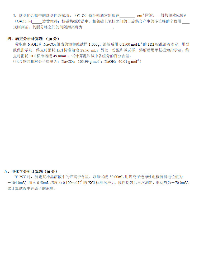 大连理工大学2007分析化学A期末试卷带答案(5)